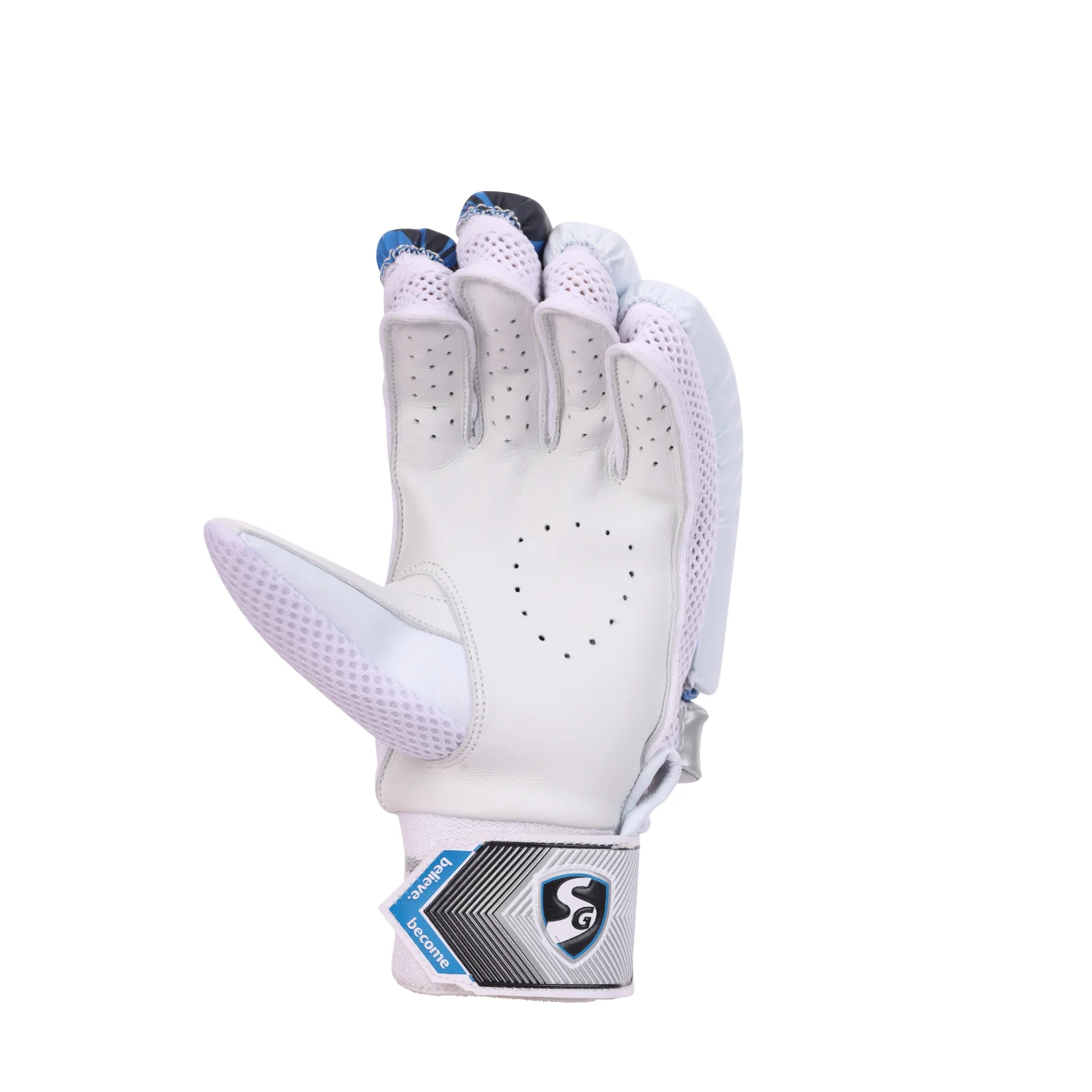 The SG Elite Batting Gloves are crafted for cricketers seeking a balance of protection, comfort, and breathability. These gloves feature premium quality leather palms for enhanced grip and durability. The finger rolls are made from non-toxic imported PolyVinylCarborate (PVC) combined with lightweight High-Density (HD) EthyleneVinylAcetate (EVA) foam padding inserts, offering excellent protection without compromising flexibility. The back of the glove is constructed from recyclable 100% cotton, known for its superior sweat-absorption properties. Fully ventilated finger construction with cotton gussets along the sides ensures optimal airflow and sweat reduction during extended use. A toweled wristband with an embossed Velcro? fastener provides a secure and comfortable fit.